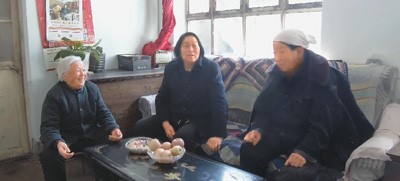 Shen Jilan (2nd left) visits local villagers on February 11 to collect public opinions as a reference to make proposals for the upcoming 13th National People’s Congress. (Photo by Yang Junfeng from People’s Daily)