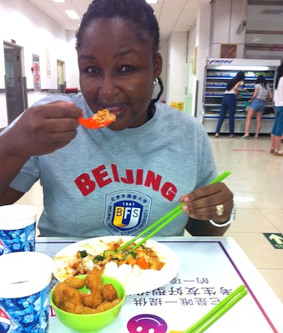 Caroline dines at the canteen of her school in Beijing.